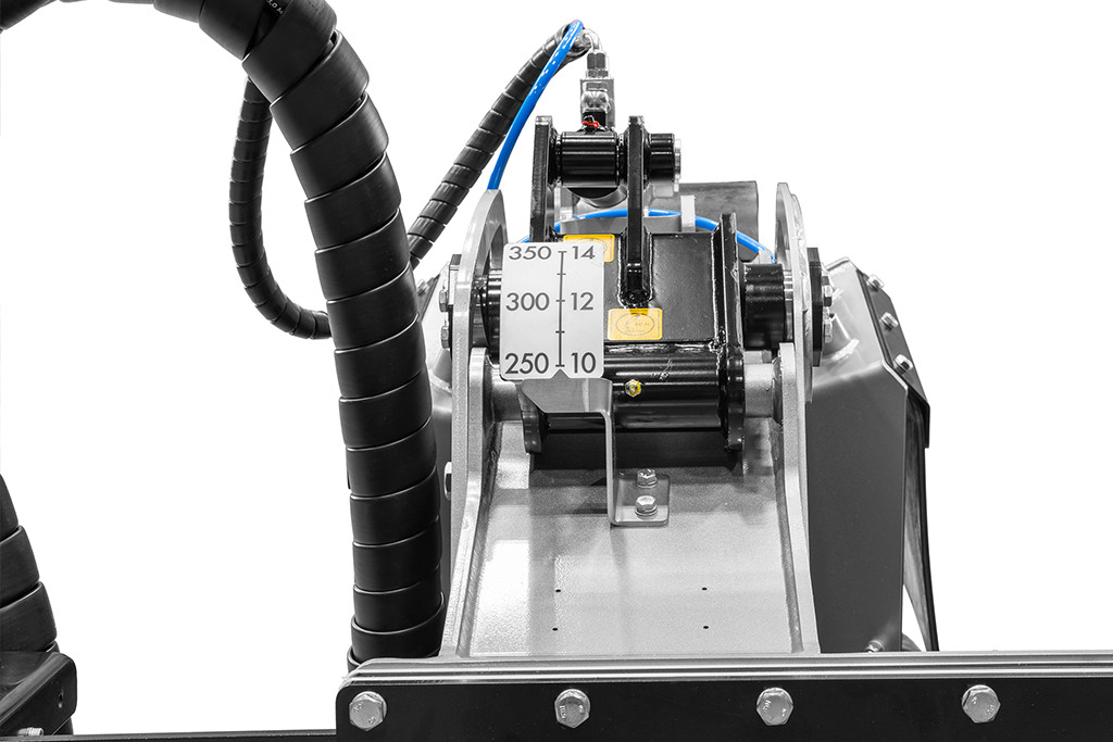 The RWL/SSL is a wheel saw for skid steers from 50 to 75 hp, able to create trenches of up to 35 cm in depth with modular widths of 2.5, 3, or 5 cm. The main application of the RWL/SSL is to conduct extremely precise excavations for laying electrical, water, gas, and fiber optic lines. The depth indicator allows for precise management of working depth, while the self-leveling skids and optimized side output maintain that depth and keep the trench free of waste materials at all times. The line includes teeth specifically designed for asphalt and concrete surfaces.