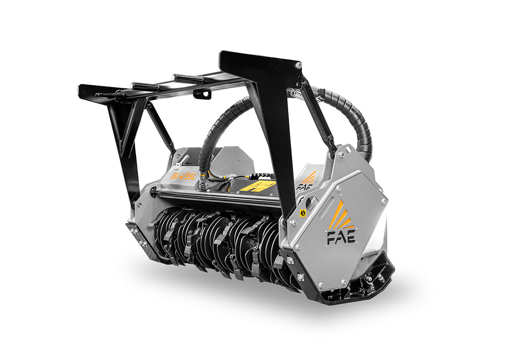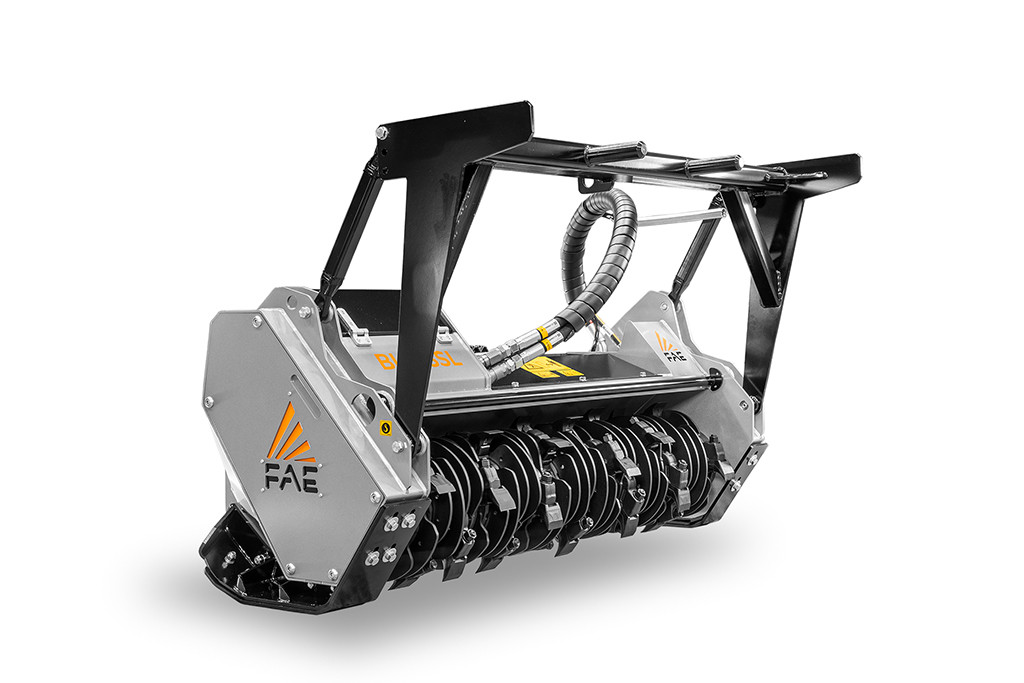 The BL4/SSL forestry mulcher, designed for Skid steers from 90 to 135 hp and is able to shred material up to 30 cm diameter. Thanks to the Bite Limiter technology this head is ideal to have high productivity in vegetation management and provide high and efficient shredding in wooded and forestry areas. The head is designed to offer high productivity, durability and ease of maintenance for the operator. The BL4/SSL is available in VT version or with Sonic, a FAE exclusive technology that optimize that optimizes performance and can be easily calibrated using the dedicated FAE App for smartphone.