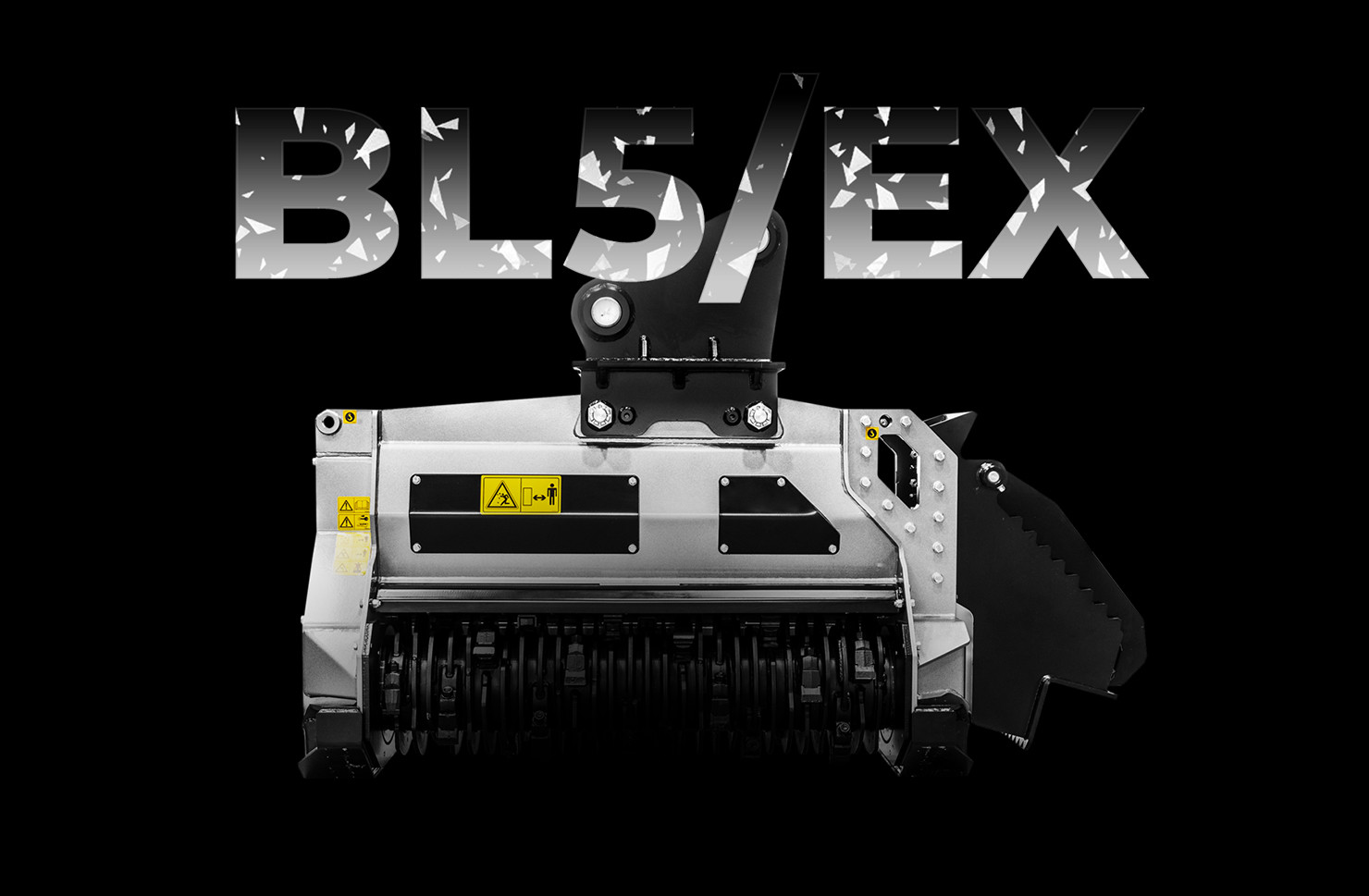 Le modèle BL5/EX peut broyer des troncs allant jusqu'à un diamètre de 40 cm et est compatible avec les pelles de 24 à 36 t, offrant une largeur de travail de 160 cm.